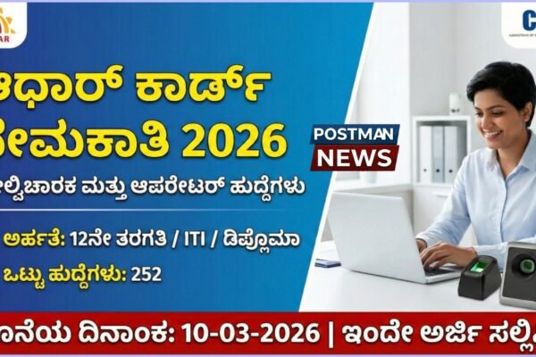CSC e-Governance Services India has released a recruitment notification for 252 Aadhaar Operator and Supervisor posts. Eligible 12th pass, ITI, and diploma candidates can apply online till March 10, 2026. ಬೆಂಗಳೂರು: CSC e-Governance Services India ಸಂಸ್ಥೆಯು ಆಧಾರ್ ಮೇಲ್ವಿಚಾರಕ/ಆಪರೇಟರ್ ಹುದ್ದೆಗಳ ಭರ್ತಿಗಾಗಿ ಅಧಿಕೃತ ಅಧಿಸೂಚನೆ ಪ್ರಕಟಿಸಿದೆ. ದೇಶದ ವಿವಿಧ ರಾಜ್ಯಗಳಲ್ಲಿ ಖಾಲಿ ಇರುವ ಹುದ್ದೆಗಳಿಗೆ ಒಟ್ಟು 252 ಅಭ್ಯರ್ಥಿಗಳನ್ನು ನೇಮಕ ಮಾಡುವ ಗುರಿಯನ್ನು…