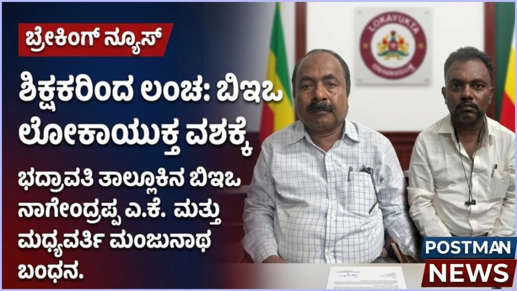 Bhadravati BEO Nagendrappa AK was caught by Lokayukta police while accepting a bribe of Rs 1 lakh for approving teachers’ salary increments and pending allowances in Shivamogga district. ಭದ್ರಾವತಿ: ಶಿಕ್ಷಕರ ವಾರ್ಷಿಕ ವೇತನ ಬಡ್ತಿ ಹಾಗೂ ಇತರೆ ಸರ್ಕಾರಿ ಭತ್ಯೆಗಳನ್ನು ಮಂಜೂರು ಮಾಡುವುದಕ್ಕಾಗಿ ಲಂಚ ಬೇಡಿಕೆ ಇಟ್ಟು ಹಣ ಸ್ವೀಕರಿಸುತ್ತಿದ್ದ ವೇಳೆ ಭದ್ರಾವತಿ ತಾಲ್ಲೂಕಿನ ಕ್ಷೇತ್ರ ಶಿಕ್ಷಣಾಧಿಕಾರಿ (ಬಿಇಒ) ನಾಗೇಂದ್ರಪ್ಪ ಎ.ಕೆ. ಅವರು ಕರ್ನಾಟಕ ಲೋಕಾಯುಕ್ತ…