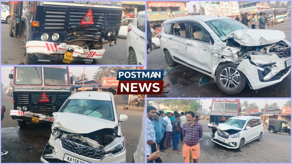 A collision between a truck and a car occurred at Vinayaka Circle in Ripponpete, causing…