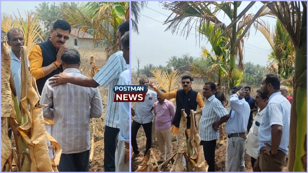 Sagar MLA Belur Gopalakrishna visited Kusugundi village in Koduru GP after a fire caused by an electrical short circuit destroyed over 250 arecanut trees, causing heavy loss to farmer Chandrashekhar. ರಿಪ್ಪನ್ಪೇಟೆ : ಕೋಡೂರು ಗ್ರಾಮ ಪಂಚಾಯಿತಿಯ ಕುಸುಗುಂಡಿ ಗ್ರಾಮದಲ್ಲಿ ಇತ್ತೀಚೆಗೆ ಸಂಭವಿಸಿದ ವಿದ್ಯುತ್ ಶಾರ್ಟ್ ಸರ್ಕ್ಯೂಟ್ ದುರಂತದಲ್ಲಿ ಸುಮಾರು 250ಕ್ಕೂ ಹೆಚ್ಚು ಅಡಿಕೆ ಮರಗಳು ಬೆಂಕಿಗೆ ಆಹುತಿಯಾದ ಹಿನ್ನೆಲೆಯಲ್ಲಿ ಸಾಗರ ವಿಧಾನಸಭಾ ಕ್ಷೇತ್ರದ ಶಾಸಕ…