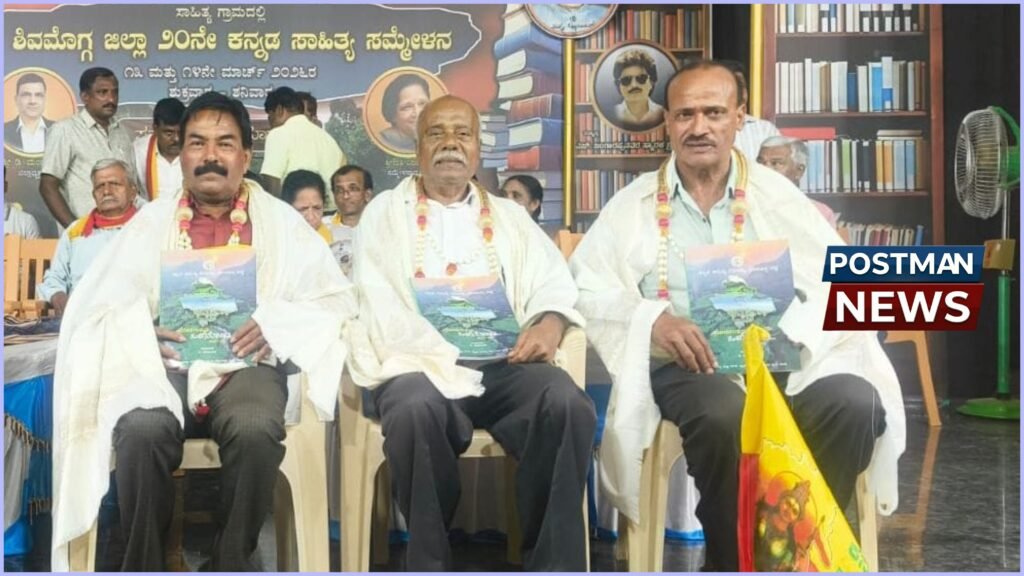 H.S. Nagaraj, writer Ambrayyamat and Sahakari Ratna awardee M.M. Paramesh were honored at the 20th District Kannada Sahitya Sammelana held in Shivamogga for their contributions to journalism, literature and the cooperative sector. ಹೊಸನಗರ: ಸಾಹಿತ್ಯ, ಪತ್ರಿಕೋದ್ಯಮ ಮತ್ತು ಸಹಕಾರಿ ಕ್ಷೇತ್ರಗಳಲ್ಲಿ ವಿಶಿಷ್ಟ ಸೇವೆ ಸಲ್ಲಿಸಿರುವ ಹೊಸನಗರ ತಾಲ್ಲೂಕಿನ ಮೂವರು ಗಣ್ಯರನ್ನು ಶಿವಮೊಗ್ಗದಲ್ಲಿ ನಡೆದ ಜಿಲ್ಲಾ ಮಟ್ಟದ 20ನೇ ಕನ್ನಡ ಸಾಹಿತ್ಯ ಸಮ್ಮೇಳನದಲ್ಲಿ ಸನ್ಮಾನಿಸಿ ಗೌರವಿಸಲಾಯಿತು….