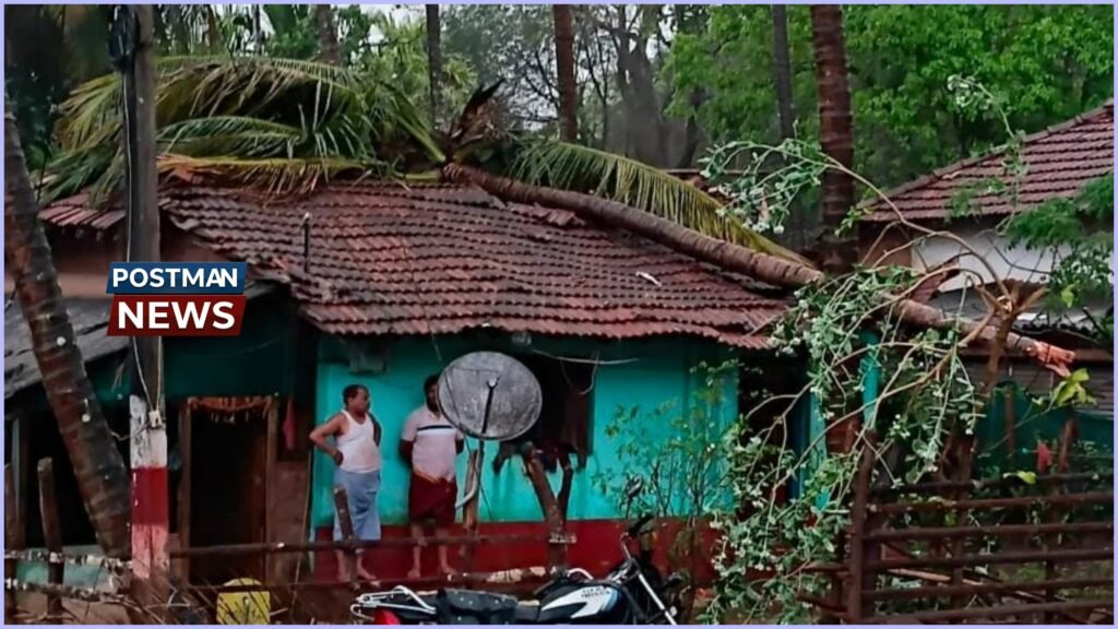 ಬೆಳ್ಳೂರಿನಲ್ಲಿ ಭಾರಿ ಮಳೆ-ಗಾಳಿಗೆ ಮನೆ ಮೇಲೆ ಬಿದ್ದ ತೆಂಗಿನ ಮರ – ತಪ್ಪಿದ ಭಾರಿ ದುರಂತ
