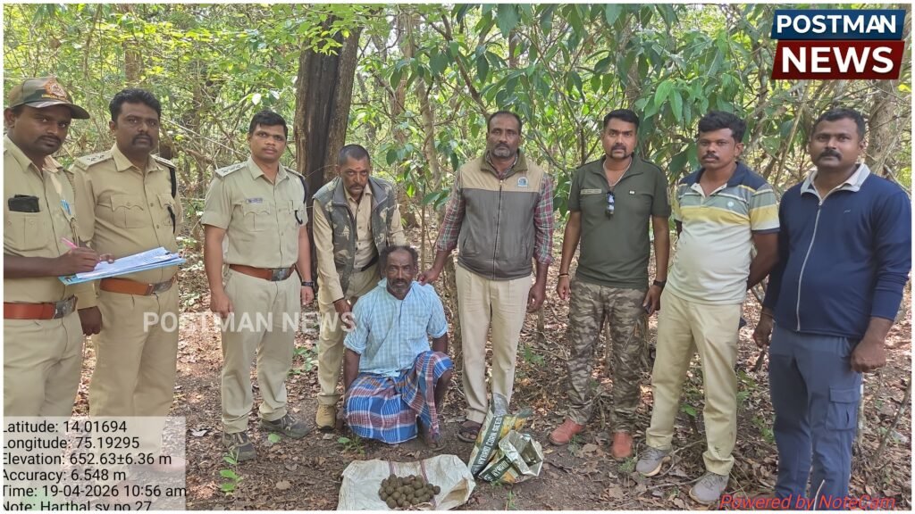 ನೆಲಬಾಂಬ್ ಬಳಸಿ ಕಾಡು ಪ್ರಾಣಿಗಳ ಶಿಕಾರಿ ಜಾಲ ಪತ್ತೆ : 45 ಜೀವಂತ ನೆಲಬಾಂಬ್ ಸಹಿತ ಓರ್ವ ಸೆರೆ , ಇಬ್ಬರು ಪರಾರಿ Forest officials in Hosanagara Taluk busted an illegal wildlife hunting operation in Haratalu reserve forest, arresting one accused and seizing 45 live country bombs along with a two-wheeler, while two suspects remain absconding. ಹೊಸನಗರ: ತಾಲ್ಲೂಕಿನ ಕೆರೆಹಳ್ಳಿ ಹೋಬಳಿಯ ಹರತಾಳು…