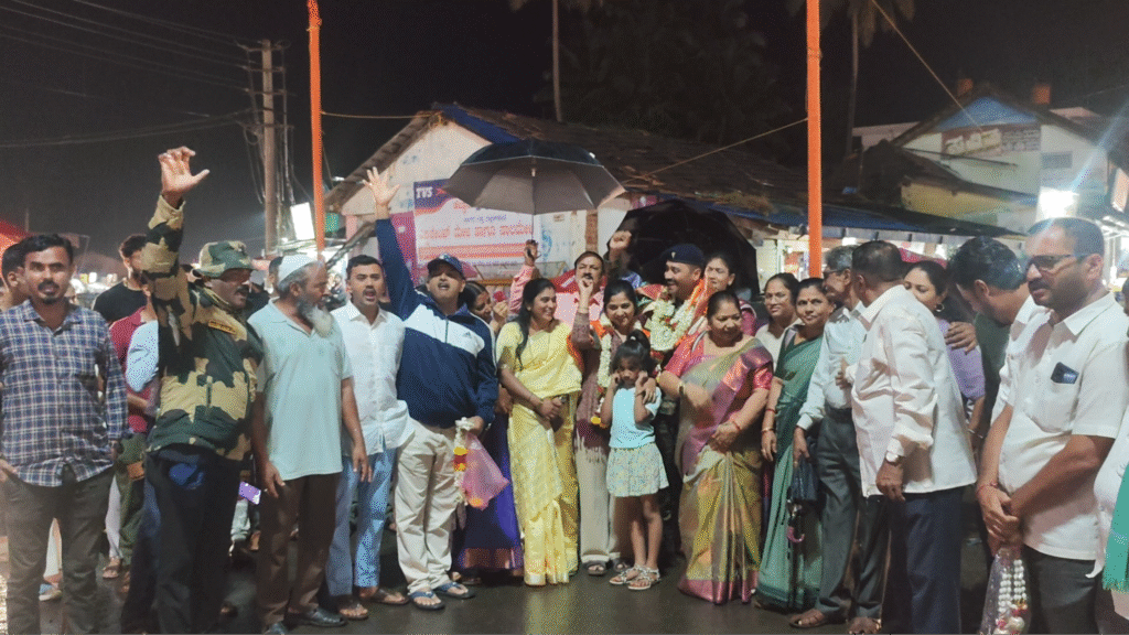 ರಿಪ್ಪನ್‌ಪೇಟೆಯ ವಿನಾಯಕ ವೃತ್ತಕ್ಕೆ ಗಿರೀಶ್ ಆಗಮಿಸುತಿದ್ದಂತೆ ಗ್ರಾಮಸ್ಥರು ಪಟಾಕಿ ಸಿಡಿಸಿ, ದೇಶಪರ ಘೋಷಣೆಯೊಂದಿಗೆ , ಸನ್ಮಾನದೊಂದಿಗೆ ಅವರನ್ನು ಊರ ಹೃದಯಬಾಗಿಲು ತೆರೆದು ಸ್ವಾಗತಿಸಿದರು. ಸಿಹಿ ಹಂಚಿ ಹರ್ಷಭರಿತ ಕ್ಷಣವನ್ನು ಸಂಭ್ರಮಿಸಿದರು. ಯುವಕರು “ಭಾರತ ಮಾತಾ ಕಿ ಜಯ”, “ಜೈ ಜವಾನ್” ಘೋಷಣೆಗಳನ್ನು ಕೂಗುತ್ತ ಊರಿನ ಶಕ್ತಿ ಮತ್ತು ಸಂಭ್ರಮವನ್ನು ಹೆಚ್ಚಿಸಿದರು.