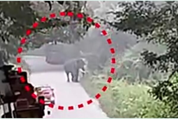 ರಸ್ತೆಯಲ್ಲಿ ಒಂಟಿ ಸಲಗ ಪ್ರತ್ಯಕ್ಷ : ಹೆದ್ದಾರಿಯಲ್ಲಿ ಆತಂಕ!