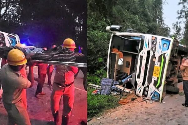 ಕಾಲೇಜು‌ ಮಕ್ಕಳಿದ್ದ ಪ್ರವಾಸಿ ಬಸ್ ಪಲ್ಟಿ – ಐವರಿಗೆ ಗಂಭೀರ ಗಾಯ