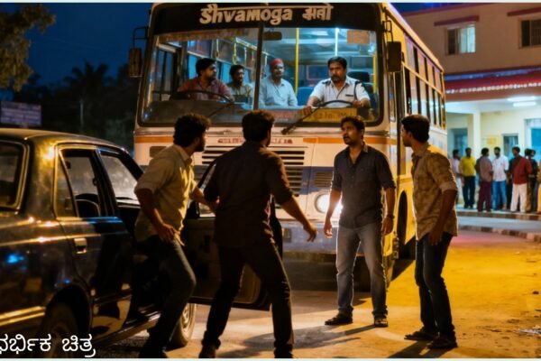 ಕಾರು ತೆಗೆಯುವಂತೆ ಹಾರನ್ ಮಾಡಿದ್ದಕ್ಕೆ ಖಾಸಗಿ ಬಸ್ ಚಾಲಕನ ಮೇಲೆ ಹಲ್ಲೆ ಶಿವಮೊಗ್ಗ : ಅಡ್ಡ ನಿಲ್ಲಿಸಿದ್ದ ಕಾರು ತೆಗೆಯುವಂತೆ ಹಾರನ್ಮಾಡಿದ್ದಕ್ಕೆ ನವದುರ್ಗ ಬಸ್ ಚಾಲಕನ ಮೇಲೆ ಹಲ್ಲೆ ನಡೆಸಲಾಗಿದೆ. ಶಿವಮೊಗ್ಗದ ಬಸ್ ನಿಲ್ದಾಣದ ಸಮೀಪ ಬ್ರೆಟ್ ಹೊಟೇಲ್ ಎದುರು ಘಟನೆ ನಡೆದಿದೆ. ನವದುರ್ಗ ಬಸ್ ಚಾಲಕ ಬಿ.ಎಸ್.ರವಿ ಮೇಲೆ ಹಲ್ಲೆ ನಡೆಸಲಾಗಿದೆ. ಬಸ್ಸು ರಾತ್ರಿ ಶಿವಮೊಗ್ಗದಿಂದ ಮಂಗಳೂರಿಗೆ ತೆರಳುತ್ತಿತ್ತು. ನಿಲ್ದಾಣದಿಂದ ಹೊರ ಬಂದು ಬೈಟ್ ಹೊಟೇಲ್ ಮುಂಭಾಗ ಪ್ರಯಾಣಿಕರನ್ನು ಹತ್ತಿಸಿಕೊಳ್ಳಲು ಚಾಲಕ ರವಿ ಬಸ್ ನಿಲ್ಲಿಸಿದ್ದರು….