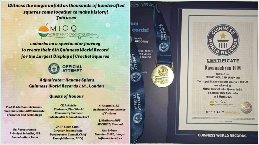 ಚೆನ್ನೈನ ಎಸ್.ಆರ್.ಎಂ. ಆಡಿಟೋರಿಯಂನಲ್ಲಿ ನಡೆದ ವಿಶಿಷ್ಟ ‘ಸ್ಯಾಂಪಲ್ಸ್ ಡಿಸ್ಪ್ಲೇ’ ಕಾರ್ಯಕ್ರಮದಲ್ಲಿ, ಕವನಶ್ರೀ ಅವರು ಮದರ್ ಇಂಡಿಯಾಸ್ ಕ್ರೋಶೆಕ್ವೀನ್ಸ್ ವಿಭಾಗದಲ್ಲಿ 1,00,581 ಕ್ರೋಶೆ ಸ್ಕ್ವೇರ್ ಸ್ಯಾಂಪಲ್ಗಳನ್ನು ತಯಾರಿಸುವ ಮೂಲಕ ವಿಶ್ವದಾಖಲೆ ನಿರ್ಮಿಸಿ, ಗಿನ್ನೆಸ್ ವರ್ಲ್ಡ್ ರೆಕಾರ್ಡ್ ಪುಸ್ತಕದಲ್ಲಿ ತಮ್ಮ ಹೆಸರನ್ನು ಅಚ್ಚಿಳಿಸಿದ್ದಾರೆ.