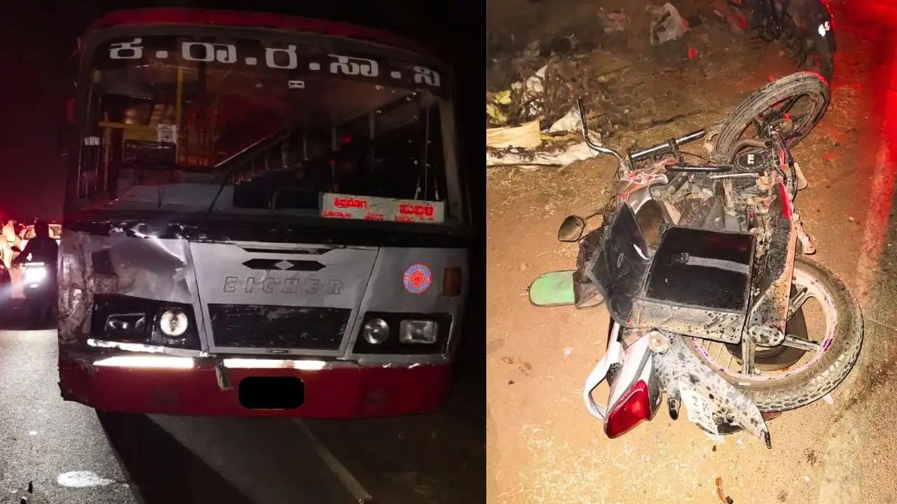 A 46-year-old bike rider, Keerthi Nayak, died on the spot after a head-on collision between a KSRTC bus and a TVS Victor bike near Holaluru in Shivamogga taluk. Police have registered a case