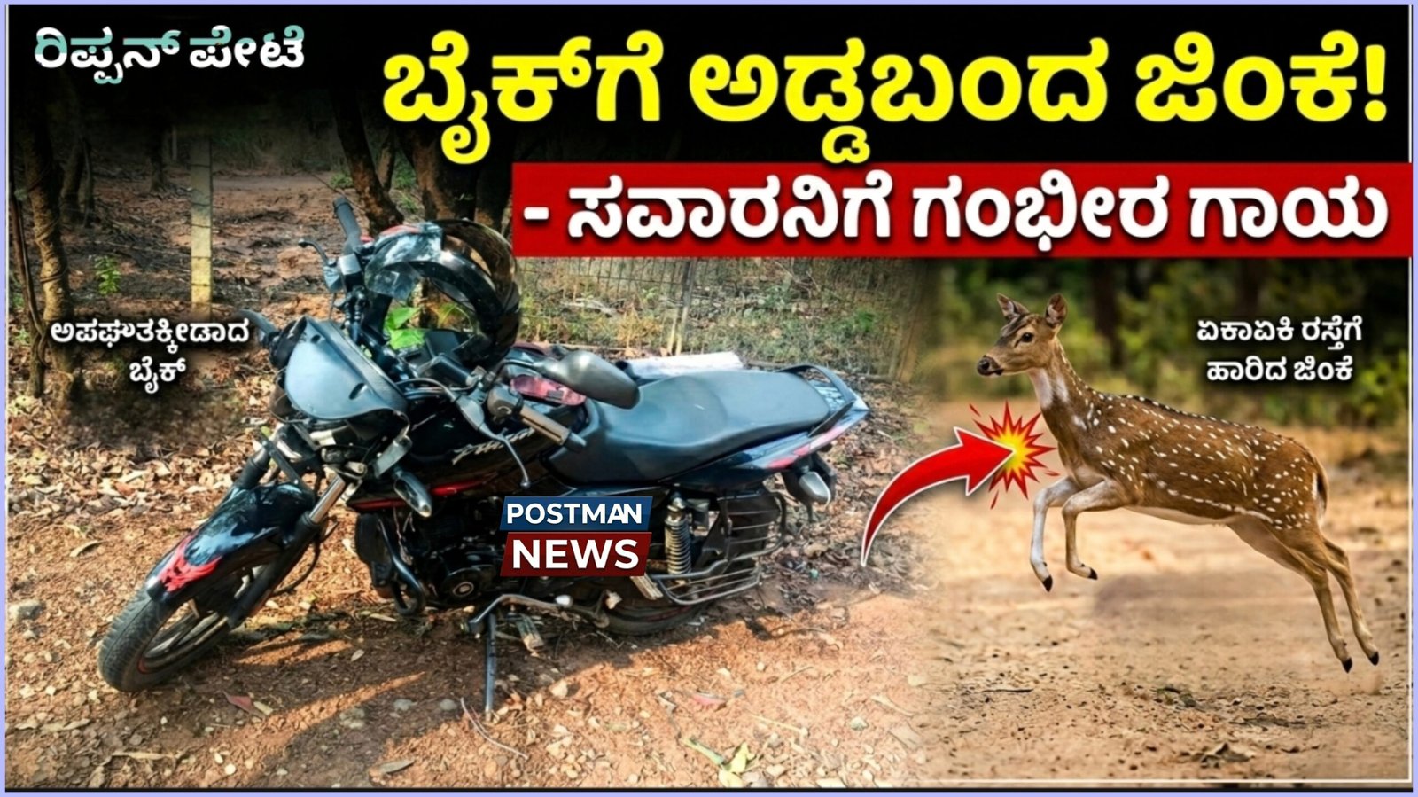 ಚಲಿಸುತಿದ್ದ ಬೈಕ್ ಗೆ ಜಿಂಕೆ ಅಡ್ಡ ಬಂದು ಅಪಘಾತ – ಸವಾರನಿಗೆ ಗಂಭೀರ ಗಾಯ