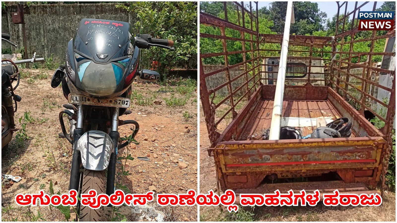 ಆಗುಂಬೆ ಪೊಲೀಸ್ ಠಾಣೆಯಲ್ಲಿ ವಾಹನಗಳ ಹರಾಜು: ಸಾರ್ವಜನಿಕರಿಗೆ ಆಹ್ವಾನ