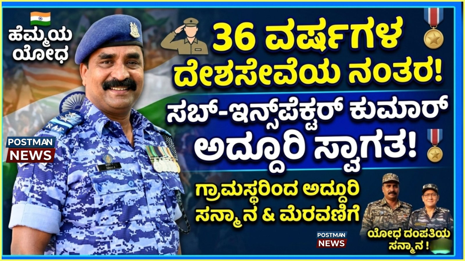 ರಿಪ್ಪನಪೇಟೆ: ಕೇಂದ್ರ ಮೀಸಲು ಪೊಲೀಸ್ ಪಡೆಯಲ್ಲಿ (CRPF) ಸತತ 36 ವರ್ಷಗಳ ಕಾಲ ಸೇವೆ ಸಲ್ಲಿಸಿ, ಸ್ವಯಂ ನಿವೃತ್ತಿ (VRS) ಪಡೆದು ತಾಯ್ನಾಡಿಗೆ ಮರಳುತ್ತಿರುವ ಹೆಮ್ಮೆಯ ಪುತ್ರ, ಸಬ್-ಇನ್ಸ್ಪೆಕ್ಟರ್ ಕುಮಾರ್. ಎ ಅವರನ್ನು ಅದ್ದೂರಿಯಾಗಿ ಸ್ವಾಗತಿಸಲು ಇಡೀ ರಿಪ್ಪನಪೇಟೆ ಗ್ರಾಮವೇ ಸಜ್ಜಾಗಿ ನಿಂತಿದೆ.