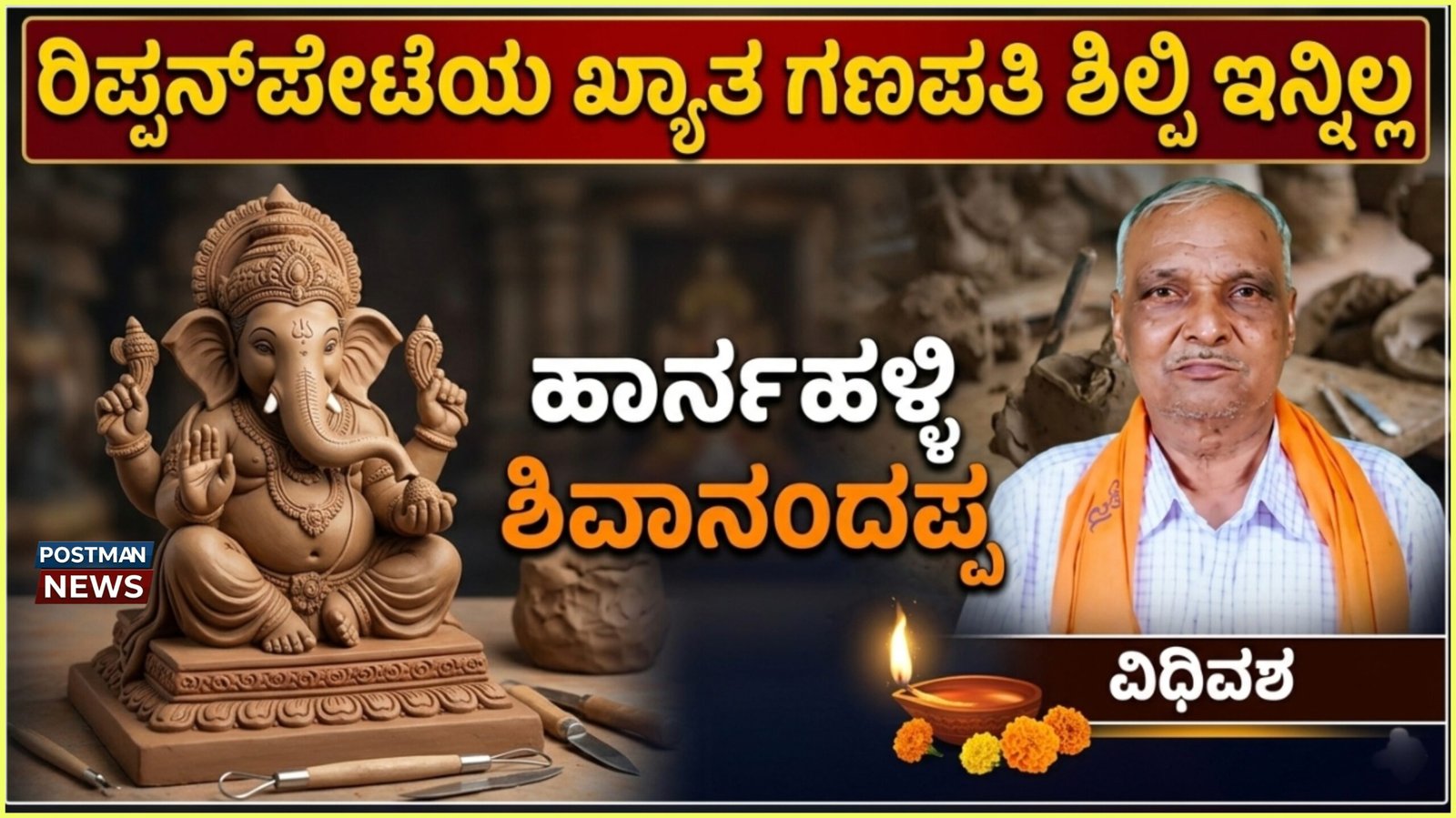 Renowned Ganapati idol sculptor Harnahalli Shivanandappa of Ripponpet passed away due to age-related illness. Known for crafting iconic idols for over 50 years, his demise marks the loss of a rich artistic and devotional legacy.
