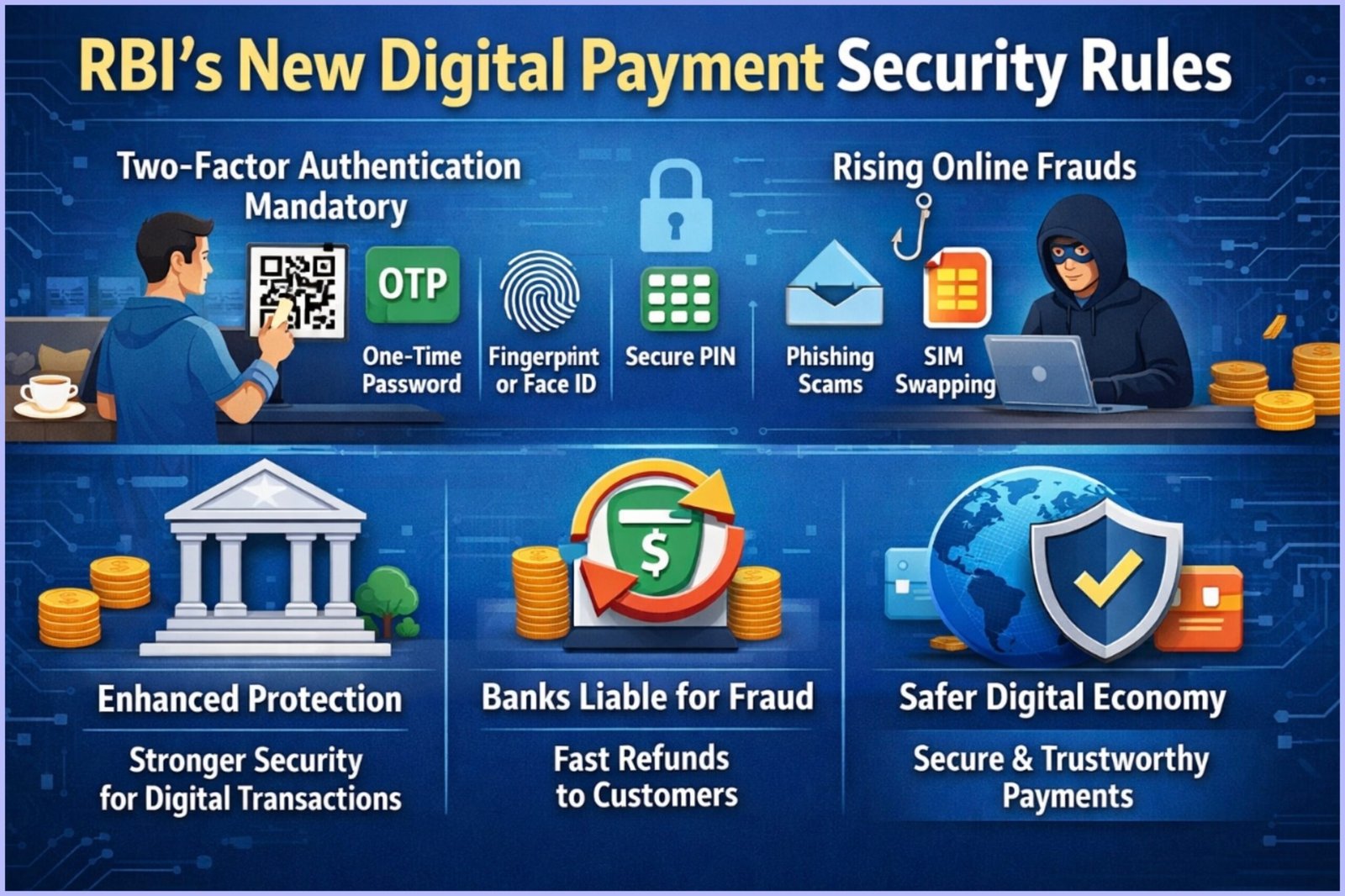 RBI introduces new digital payment security rules with mandatory two-factor authentication to curb online fraud and enhance customer protection in India.