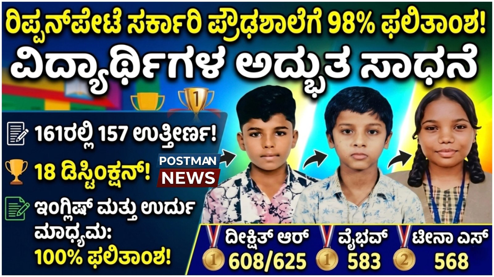 Ripponpet Government High School records an impressive 98% pass rate in SSLC exams, with 157 out of 161 students passing and several securing distinction.