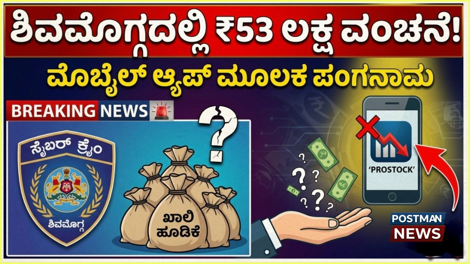 A Shivamogga resident lost ₹53.10 lakh in a cyber fraud after being lured into investing through a fake trading app named “Prostock.” Police have registered a case and launched an investigation.
