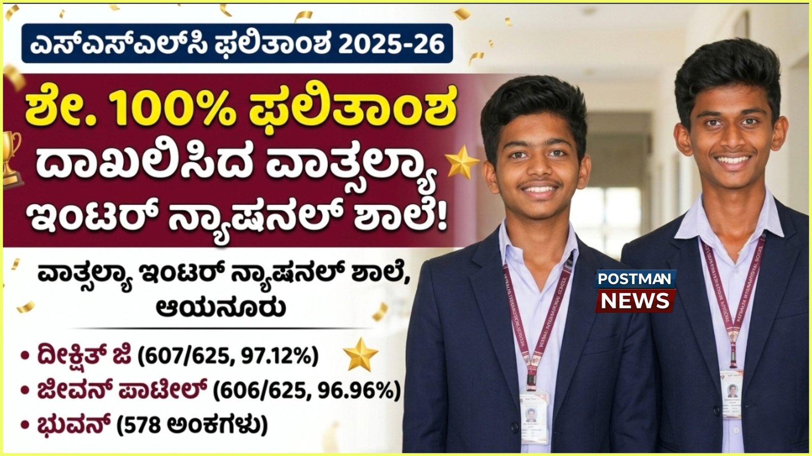 ಶಿವಮೊಗ್ಗ ಜಿಲ್ಲೆಯ ಪ್ರತಿಷ್ಠಿತ ಶಿಕ್ಷಣ ಸಂಸ್ಥೆಯಾದ ವಾತ್ಸಲ್ಯ ಇಂಟರ್ ನ್ಯಾಷನಲ್ ಶಾಲೆಯು 2025-26ನೇ ಸಾಲಿನ ಎಸ್ಎಸ್ಎಲ್ಸಿ ಪರೀಕ್ಷೆಯಲ್ಲಿ ಶೇ.100 ಫಲಿತಾಂಶ ದಾಖಲಿಸಿ ಗಮನ ಸೆಳೆದಿದೆ. ಶಾಲೆಯ ಈ ಸಾಧನೆ ಶಿಕ್ಷಣ ಕ್ಷೇತ್ರದಲ್ಲಿ ಮತ್ತೊಮ್ಮೆ ತನ್ನ ಮೇಲುಗೈಯನ್ನು ಸಾಬೀತುಪಡಿಸಿದೆ.