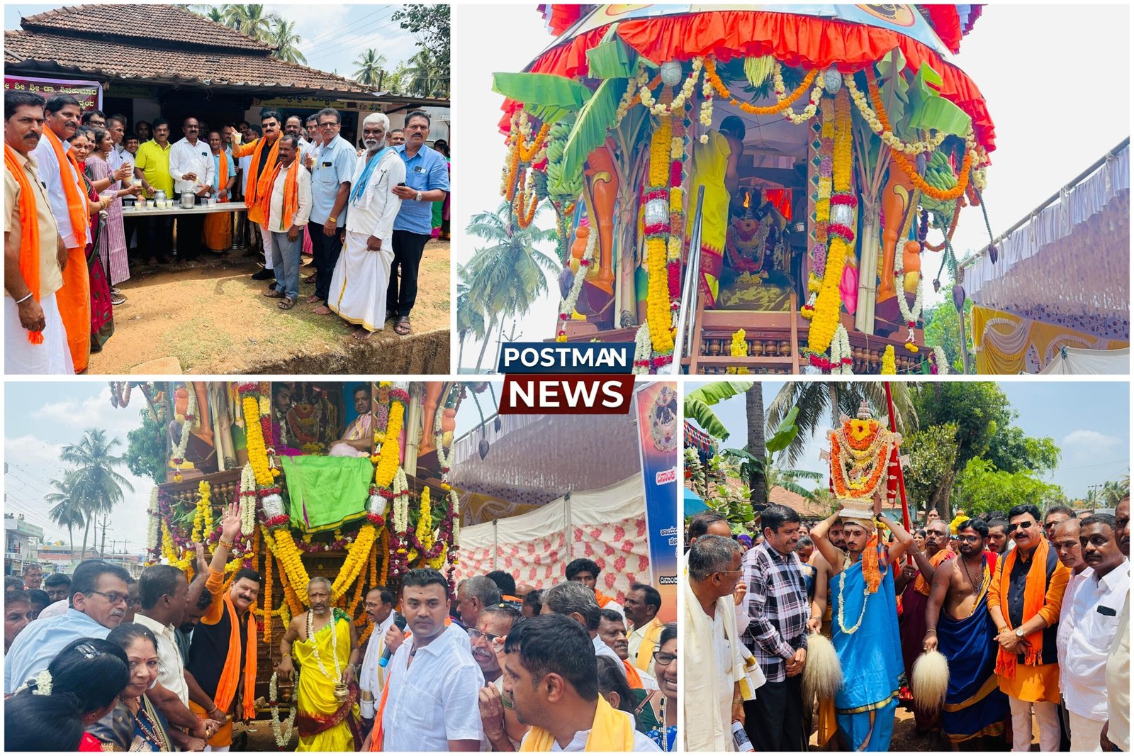 Sri Varasiddhivinayaka Swamy Maharathotsava was celebrated grandly in Hosanagara with भक्तs participating in large numbers, chanting slogans, pulling the chariot, and offering devotional services.