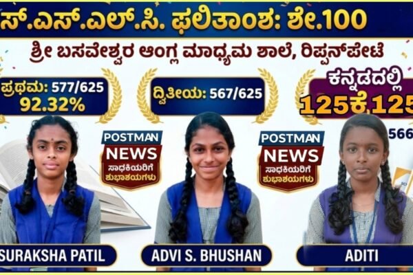 RIPPONPETE | ಶ್ರೀ ಬಸವೇಶ್ವರ ಆಂಗ್ಲ ಮಾಧ್ಯಮ ಶಾಲೆಗೆ ಶೇ.100 ಫಲಿತಾಂಶ Sribasaveshwara English Medium High School in Ripponpet achieves 100% SSLC results, with top scorer Suraksha Patil securing 92.32% and students delivering outstanding performance. ರಿಪ್ಪನ್‌ಪೇಟೆ: ಪಟ್ಟಣದ ಶ್ರೀ ಬಸವೇಶ್ವರ ಆಂಗ್ಲ ಮಾಧ್ಯಮ ಪ್ರೌಢಶಾಲೆಯು ಈ ಸಾಲಿನ ಎಸ್.ಎಸ್.ಎಲ್.ಸಿ. ಸಾರ್ವಜನಿಕ ಪರೀಕ್ಷೆಯಲ್ಲಿ ಶೇ.100 ಫಲಿತಾಂಶ ದಾಖಲಿಸಿ ಗಮನ ಸೆಳೆದಿದೆ. ಈ ಕುರಿತು ಶಾಲೆಯ ಮುಖ್ಯೋಪಾಧ್ಯಾಯರಾದ ಚಂದ್ರಪ್ಪ ಮಾಹಿತಿ…